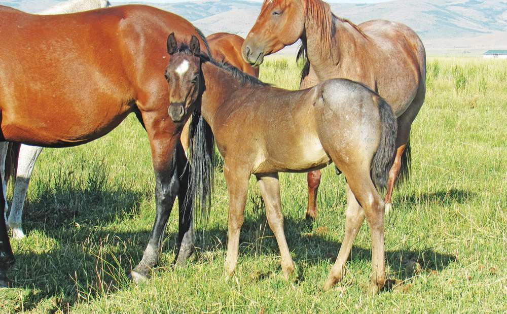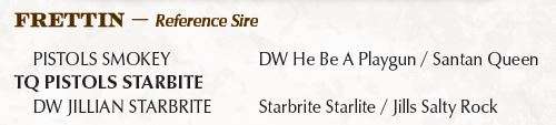 Oh, what a deal! Born black and turning blue!!! I purchased TQ Pistols Starbrite for Frettin from the Whiteley family in 2020 as she was another composite mare which represented thirty years of planning. Her granddam Jills Salty Rock was an awesome reliable mare – one of the last I actually rode. Her grandsire was Stretch who was my go-to till I got Frettin! So lots of sentiment here!! Not to mention that Travis and Jennifer lost Pistols Smokey a couple of months ago so this colt is extra special! That’s all folks! Watch for future foals from this nice mare by Dash Ta Dynamite! (See ad in this catalog!)